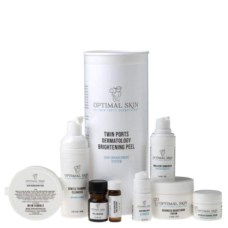 Since melasma is triggered by sunlight, the mainstay of any treatment plan is UV protection. This is best achieved by preventing sunlight from coming into contact with the skin by wearing a broad brimmed hat and sunglasses. Additionally, the use of a daily sunscreen is essential. The best type of sunscreen for melasma is a physical sunscreen containing zinc oxide or titanium dioxide. Physical sunscreens block UV rays unlike chemical sunscreens that absorb and break down UV rays. Twin Ports Dermatology has some great physical sunscreen options: EltaMD UV Pure, EltaMD UV Physical, Intellishade TruPhysical, and the entire Colorescience line.